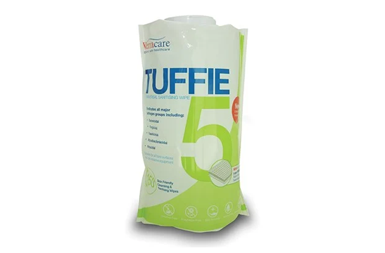 Tuffie 5 cleaning and disinfectant wipes are ideal for the patient care environments where cleanliness and eradication of bacteria is required. Impregnated with a low-level biocide.