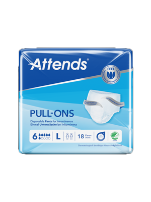 The Attends® Pull-Ons are a close fitting pants that can be easily pulled up and down like normal underwear, and is suitable for light bladder and/or faecal incontinence.